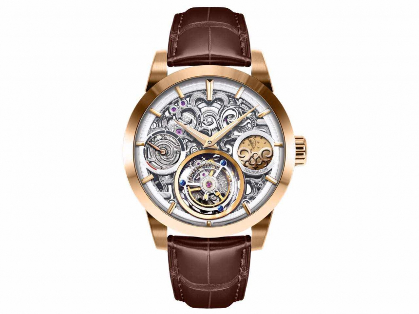 型號:MO1006 機芯直徑:33毫米 最小厚度:6.45 毫米 193件組件及27顆寶石承軸 振頻: 28800次/每小時 6時位陀飛輪每轉一圈60秒 飛行陀飛輪 雙發條動力驅動 80小時動力儲存 能量顯示 星辰盤功能 擺輪及擒縱機構同時圍繞擺輪中心 鱷魚皮表帶 藍寶石玻璃