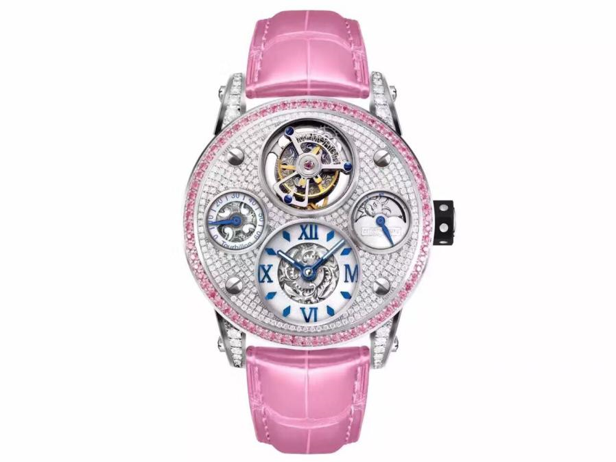 藍寶石玻璃、粉紅鱷魚皮皮帶