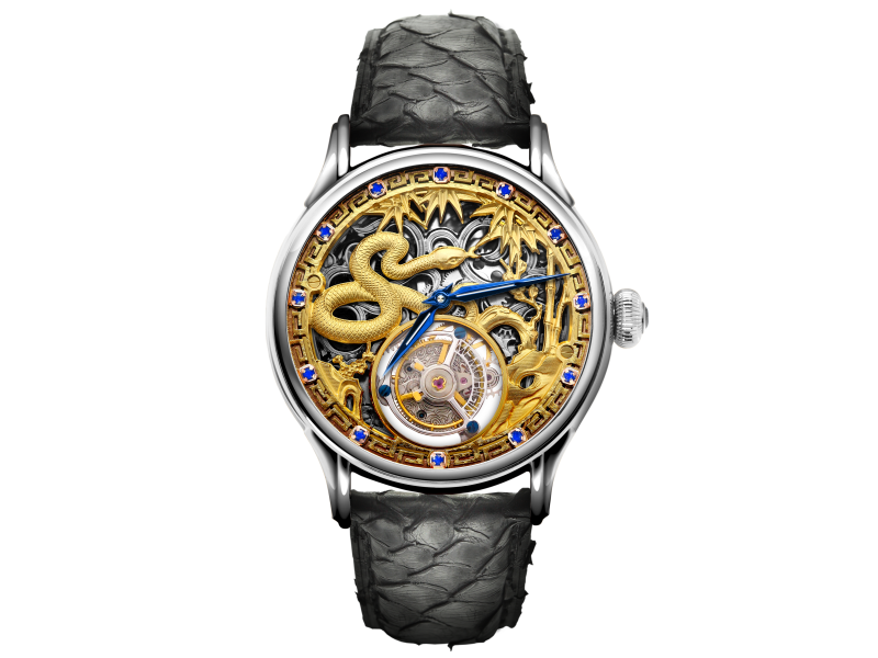 鍍玫瑰金祥雲鏤空雕刻及精緻蛇浮雕表面