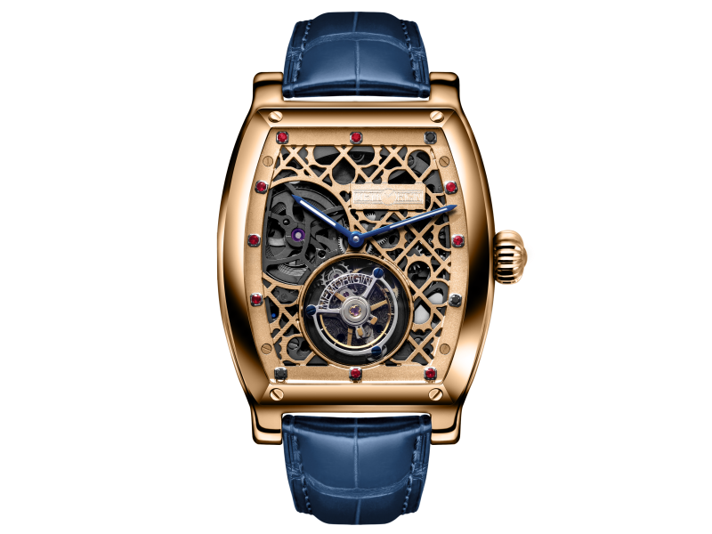 9 顆紅寶石及3 顆黑鑽鑲嵌於表面